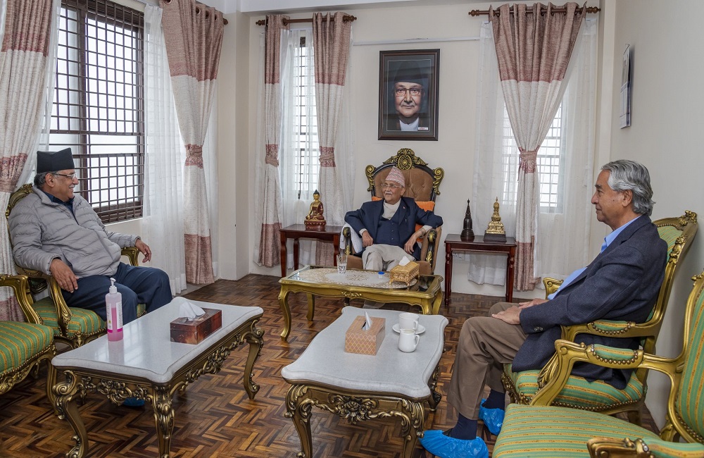 शुक्रबार सुरुमा उनले नेपाली कांग्रेसका सभापति शेरबहादुर देउवासँग छुट्टै छलफल गरेका छन् । छलफलपछि प्रचण्डसहित तीन जनाले बैठक गरेका थिए । त्यसपछि ओली र प्रचण्डबीच समेत छलफल भएको हो ।
