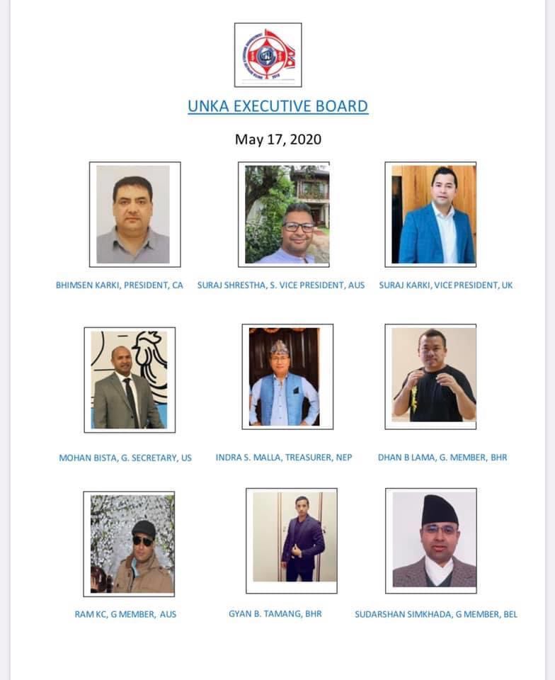 कार्यसमितिको महासचिवमा अमेरिका निवासी मोहन बिस्ट , कोषाध्यक्षमा इन्द्रबहादुर मल्ल रहेका छन । त्यसै गरेर बोर्ड मेम्बरहरूमा बहराईनबाट धन बहादुर लामा, आस्ट्रेलियाबाट श्रीराम केसी ,बहराईनबाट ज्ञान बहादुर तमांग तथा बेल्जियमबाट सुदर्शन सिम्खडा निर्वाचित भएकाछन ।