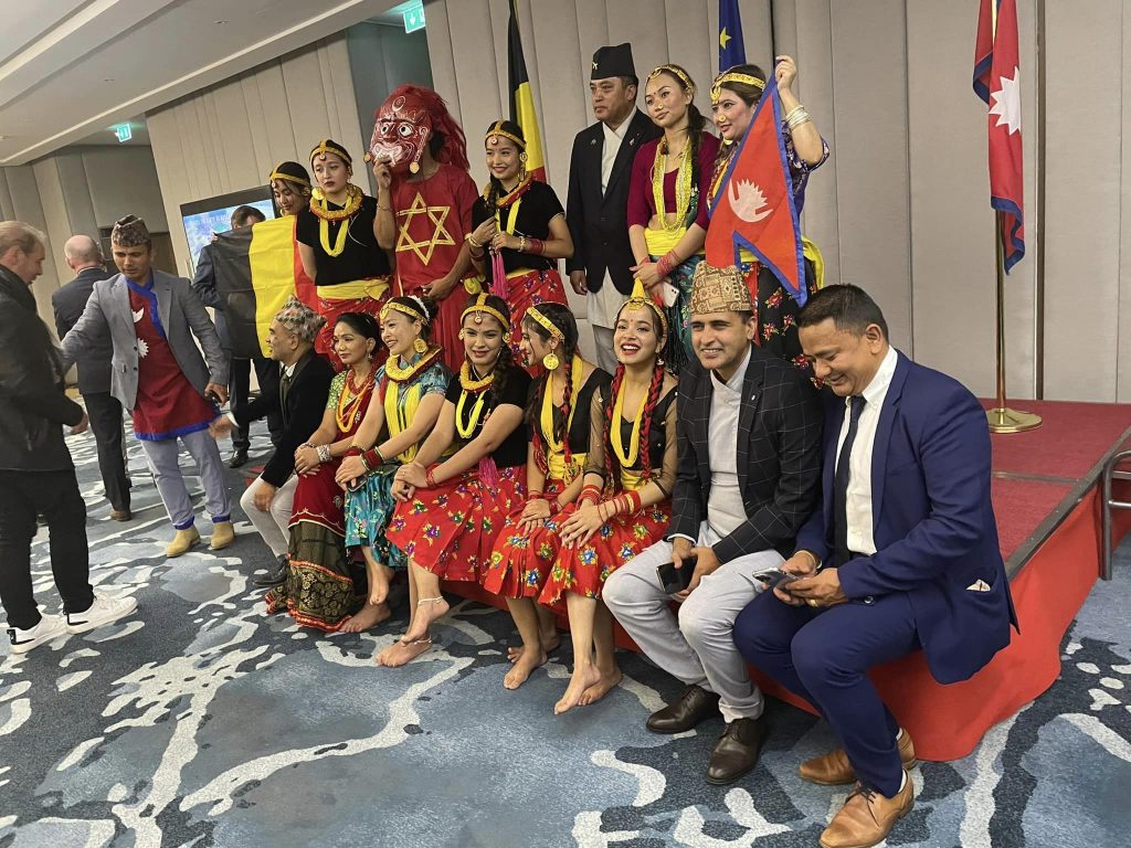 कार्यक्रममा युरो नेपाल कलाकार संघका कलाकारहरुले नेपाली सांस्कृतिक झाँकी र नृत्य प्रस्तुत गरेका थिए। भारत , पाकिस्तान , बंगलादेश लगायत यरोपियन देशहरुका राजदुतहरु , युरोपियन युनियन र बेल्जियम सरकारका विशिष्ट व्यक्तिहरु , एनआरएनए बेल्जियम , नेदरल्याण्ड र लग्जेम्बर्गका अध्यक्ष लगायतका पधाधिकारीहरु साथै सामाजिक संघ संस्थाका पदाधिकारीहरु उपस्थित भएको कार्यक्रमको संचालन नेपाली राजदुताबासका उपनियोग प्रमुख सुरेश अधिकारीले संचालन गर्नु भएको थियो।