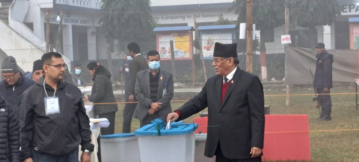 गोरखा २ बाट प्रतिनिधि सभा सदस्य उम्मेदवार रहेका प्रचण्डले भरतपुर-१४ शान्तिपुरस्थित नेपाल पुलिस स्कुलमा मतदान गरेका हुन् ।