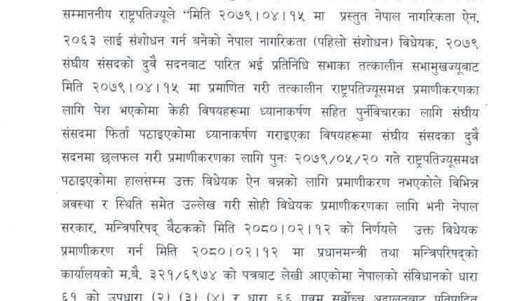 राष्ट्रपती द्वारा नागरिकता बिद्ययक पारित भए पछि एनआरएनहरु खुशी, गैर आबासीय नेपाली नागरिकता प्राप्तिको बाटो खुल्यो,