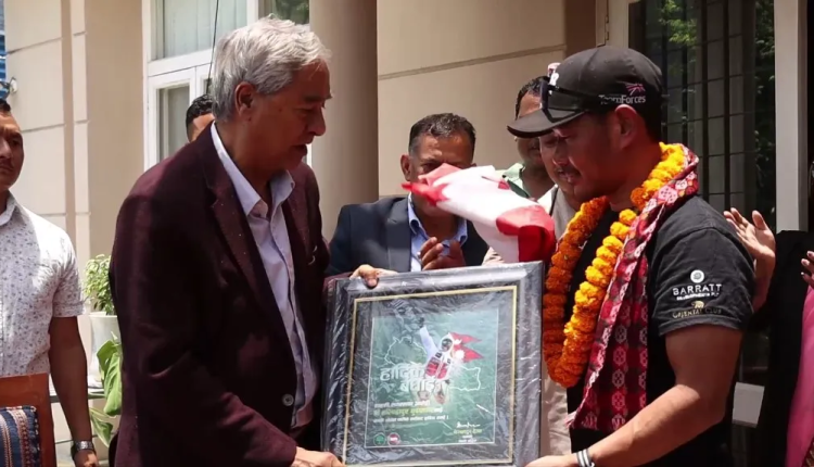 काठमाडौं \ नेपाली कांग्रेसले दुवै खुट्टा गुमाएका सगरमाथा आरोही हरि बुढामगरलाई सम्मान गरेको छ । पार्टी सभापति शेरवहादुर देउवाले सगरमाथाका सफल आरोही बुढामगरलाई सम्मान गर्नुभएको हो । बिहीवार निजी निवास धुम्बाराहीमा पार्टीको तर्फबाट मगरलाई सम्मान गर्दै सभापति देउवाले दुवै खुट्टा गुमाएका बुढामगरले सगरमाथाको सफल आरोहण गर्नु देशको लागि गर्वको विषय भएको बताउनुभयो ।