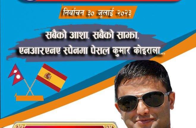 गैर आवासीय नेपाली संघ स्पेनको अध्यक्षमा पेसल कुमार कोइराला निर्विरोध निर्वाचित हुनु भएकोछ । अध्यक्ष पदमा कोइराला एक जनाको मात्र उम्मेद्बारी परेकोले उहा आगामी कार्यकालका लागि एनआरएनए स्पेनको अध्यक्ष निर्वाचित हुनु भएको हो ।