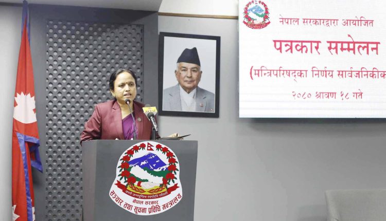 यही साउन १६ गते बसेकाे मन्त्रिपरिषद्को बैठकले अर्थ मन्त्रालयको प्रस्तावमा यस परियोजनाका लागि १५ लाख ५५ हजार पाँच सय पाँच अमेरिकी डलर अनुदान स्वीकार गर्ने निर्णय गरेको सरकारकी प्रवक्ता एवम् सञ्चार तथा सूचना प्रविधि मन्त्री रेखा शर्माले जानकारी दिनुभयाे ।