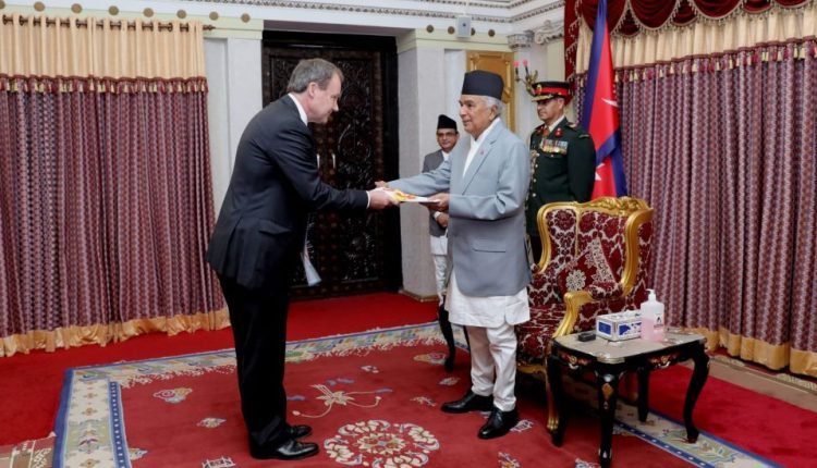 काठमाडौं \ राष्ट्रपति रामचन्द्र पौडेलसमक्ष नेपालका लागि नवनियुक्त दुई राजदूतले राष्ट्रपति भवनमा बिहीबार आयोजित छुट्टाछुट्टै विशेष समारोहमा आ–आफ्नो ओहोदाको प्रमाणपत्र पेश गर्नुभयो।