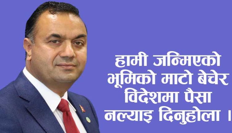 “यही अक्टोबर महिना भित्रै गैर आवासीय नेपाली नागरिकता कार्यान्वयनमा आउंछ ।अब डराउनु पर्ने अवस्था छैन। संविधानले नै हाम्रो सम्पत्तिको अधिकार प्रत्याभूत गरेको छ। त्यसैले हामी जन्मिएको भूमिको माटो बेचेर विदेशमा पैसा नल्याइ दिनुहोला,” उनले भावुक हुँदै भने।
