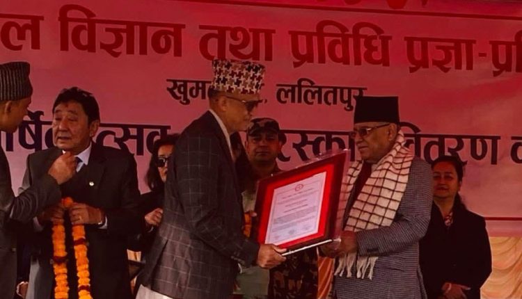 नास्टद्वारा बुधबार आयोजित एक समारोहमा प्रधानमंत्री पुष्पकमल दाहाल प्रचण्डले उक्त पुरस्कार प्रदान गरे। एनआरएनएका प्रमुख कार्यकारी अधिकृत राजेन्द्र कुमार राउतले डा अधिकारीको तर्फबाट उक्त पुरस्कार ग्रहण गरेका थिए।