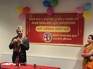 यस अघि पानसमा दीप प्रज्वलन गरि प्रमुख अतिथी बेनेलक्सका लागि नेपाली राजदुत गेहेन्द्र राजभन्डारी, बिशेष अथिति एनआरएनए बेल्जियम कि अध्यक्ष सीता सापकोटा, संस्थाकी अध्यक्ष सुशिला खतिवडाले अधिबेशनको उद्घाटन् गर्नु भएको थियो ।
