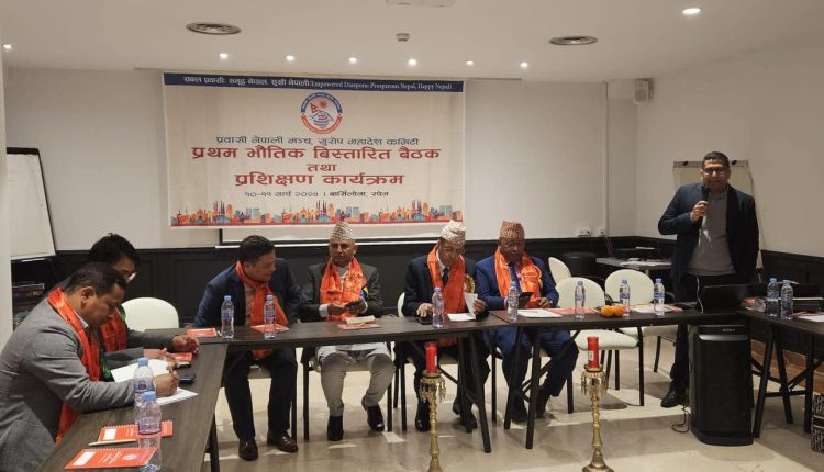 युरोप महादेश कमिटीका संयोजक मुक्त गुरुङको अध्यक्षता र सचिव शालिकराम थपलियाले सञ्चालन गर्नुभएको बैठकमा प्रवासी नेपाली मञ्च अन्तराष्ट्रिय कमिटीका अध्यक्ष सञ्जय थापा, उपसचिव तथा संगठन विभाग उपप्रमुख कर्ण शाही, प्रवासी नेपाली मञ्च अन्तराष्ट्रिय कमिटीका सचिवालय सदस्य तथा युरोप इञ्चार्ज भक्त वाग्ले, गैर आवासीय नेपाली संघ अन्तराष्ट्रिय समन्वय परिषद उपाध्यक्ष रामशरण सिंखडा, सचिब डा नबराज रोस्यारा, पूर्वउपाध्यक्ष अर्जुन श्रेष्ठ लगायतका बक्ताहरुले मातृभूमिको आवश्यकता र प्रवासबाट खेल्नुपर्ने भूमिकाको बिषयमा आफ्नो धारणा राख्नुभएको थियो ।