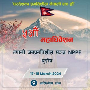 नेकपा माओवादीको प्रबासी संगठन नेपाली जन प्रगतिशिल मंच युरोपमा नयाँ नेत्रित्व चयन भएकोछ । हालै स्पेनको बार्सिलोनामा सम्पन्न मंचको पाचौ अधिबेशनले चित्र सुबेदीको अध्यक्षतामा ३९ सदस्यीय कार्य समिति चयन गरेको हो ।
