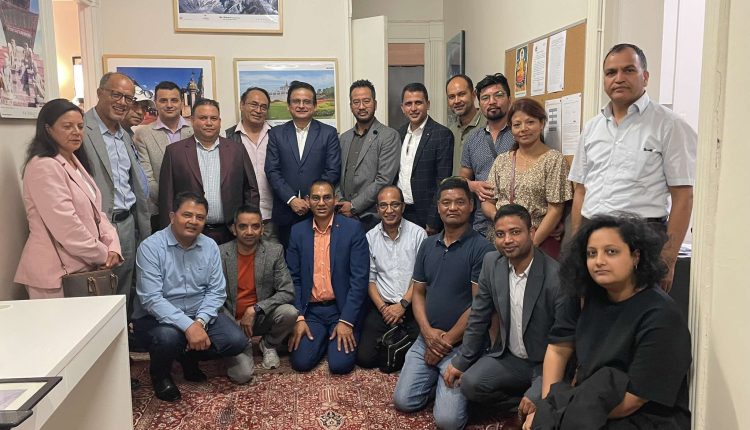यस अभियानलाई युरोप भरि बिस्तार गरेर आफ्नो ब्याबसायिक एकता र दक्षताको ब्रिद्धि गर्ने, नेपाली उत्पादनलाई युरोपमा फैल्याउने उद्यस्य सहित दर्ता भएको नेपाली ब्यबसायी संघ युरोपले गत सोमबार नेपाली राजदुताबास फ्रान्सको संयोजनमा त्यहा ब्यवसाय गरिरहेका नेपाली ब्यबसायीहरु सँग अन्तर्कृया गरेकोछ ।