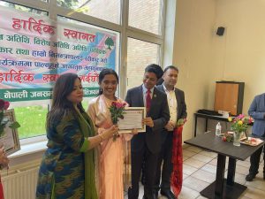 कार्यक्रममा शुभकामना ब्यक्त गर्नु हुँदै प्रमुख अतिथि राजदुत राजभन्डारीले प्रवासमा नेपाली समुदायको एकता देखिने र आत्मियता बढाउने यस खाले कार्यक्रमको आयोजना गरिनु सुखद भएको बताउनु भयो । उहाले नेपालीहरुको सबल पक्ष भनेकै बिबिधता बिचको एकता र सांकृतिक सम्पन्नता भएकोले त्यसको प्रयोग गरेर युरोपमा नेपाल चिनाउन कार्यक्रमहरु गर्न आग्रह गर्नु भयो ।