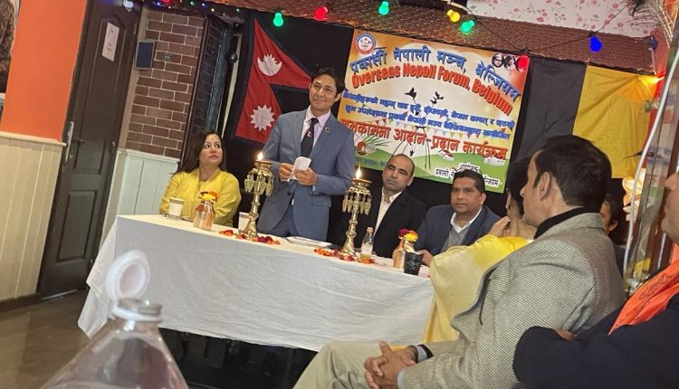 कार्यक्रमका बिशेष अतिथि प्रबासी नेपाली मंच युरोपका सचिब सालिकराम थपलियाले नेकपा एमालेका पूर्व अध्यक्ष स्वर्गीय मनमोहन अधिकारीले सुरु गर्नु भएको दसैं तिहार लगायतका चाडपर्बको अबसर पारेर गरिने शुभकामना आदानप्रदान कार्यक्रमलाई बेल्जियम समितिले पनि निरन्तरता दिदै प्रवासमा नेपाली समुदायलाई जोड्ने काम गरेकोमा धन्यवाद दिनु भयो । उहाले प्रबासमा रहेका नेपालीहरुका समस्या समाधानका लागि पहल गर्न सबै बैचारिक संस्था र एनआरएनए मिलेर काम गर्नु आबस्यक छ भन्नु भयो ।