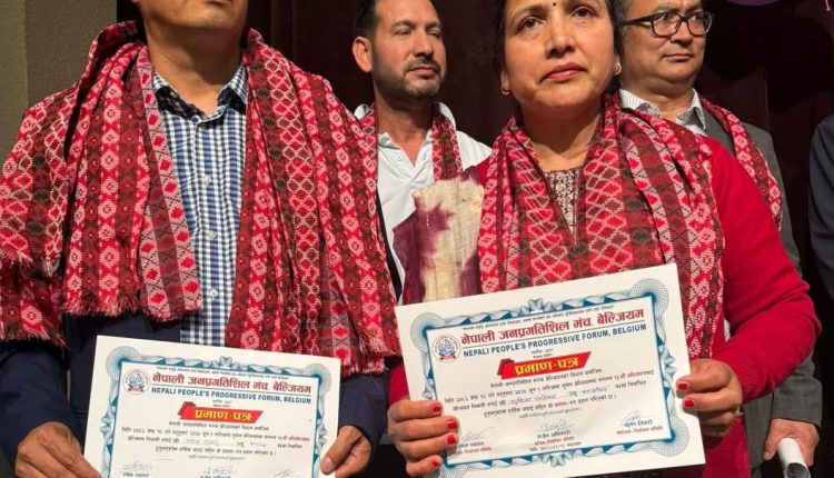 नेपाली जना प्रगतिशील मंच बेल्जियमको अध्यक्षमा मनिष गुरुङ निर्बाचित हुनुभएकोछ । आइतबार लुभेनमा भएको मंचको १३ औ अधिबेशनले गुरुङको अध्यक्षतामा १८ सदस्यीय नयाँ कार्यसमितिको सर्बसम्मत चयन गरेको हो।