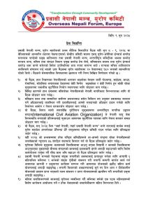 युरोप महादेश संयोजक मुक्तबहादुर गरुङको अध्यक्षता र सचिव शालिकराम थपलियाले संचालन गर्नु भएको बैठकले बर्तमान अबस्थामा युरोपका नेपालीहरुका आबस्यकता, उनीहरु मार्फत पार्टी र देश हितमा गर्न सकिने कामका बारेमा छलफल गरी १६ बुँदे निर्णय लिएको हो ।