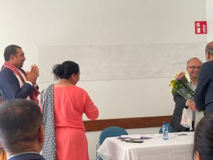 सोहि अवसरमा आफ्नो कार्यकाल पुरा भएर दुताबासका द्वितीय सचिब रूस कार्की एबम पदोन्नति भएर फर्किन लाग्नुभएका तृतीय सचिब रमेश गैरेलाई प्रबासी नेपाली मंचका अध्यक्ष बिनोद न्यौपाने, पर्बत समाज बेल्जियम अध्यक्ष नन्दा गुरुङ (दुर्गा) ले खादा र पुष्प गुच्छा दिएर बिदाइ गंर्नुभएको थियो।