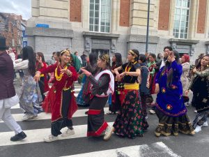 युरो नेपाल कलाकार संघ ( इना ) बेल्जियमले संयोजन गरेको कार्यक्रममा बेनेलक्सका लागी नेपाली राजदुत सेवा लम्सालले परेडको नेतृत्व गर्नुभएको थियो। नेपालीपन झल्कने गरि बनाइएको गुडाउने नेपालीघरबाट सडक छेउ उभिएका बालबालिका देखि बृद्ध सम्मलाई चकलेट, स्नूफ बाढ्दै, अभिबादन गर्दै, नाच देखाउदै, संगीत सुनाउदै हिडेको नेपाली परेड बिशेष आकर्षक देखिएको थियो । आयोजक संस्था रोयल अर्डर अफ पितरमान भिजेड्वेका संचालकले नेपाली समुदायको रंगिन परेडको प्रशंशा गर्दै सडकमा उभिएका दर्शक र सहभागीहरुलाई परिचय गरेका थिए।