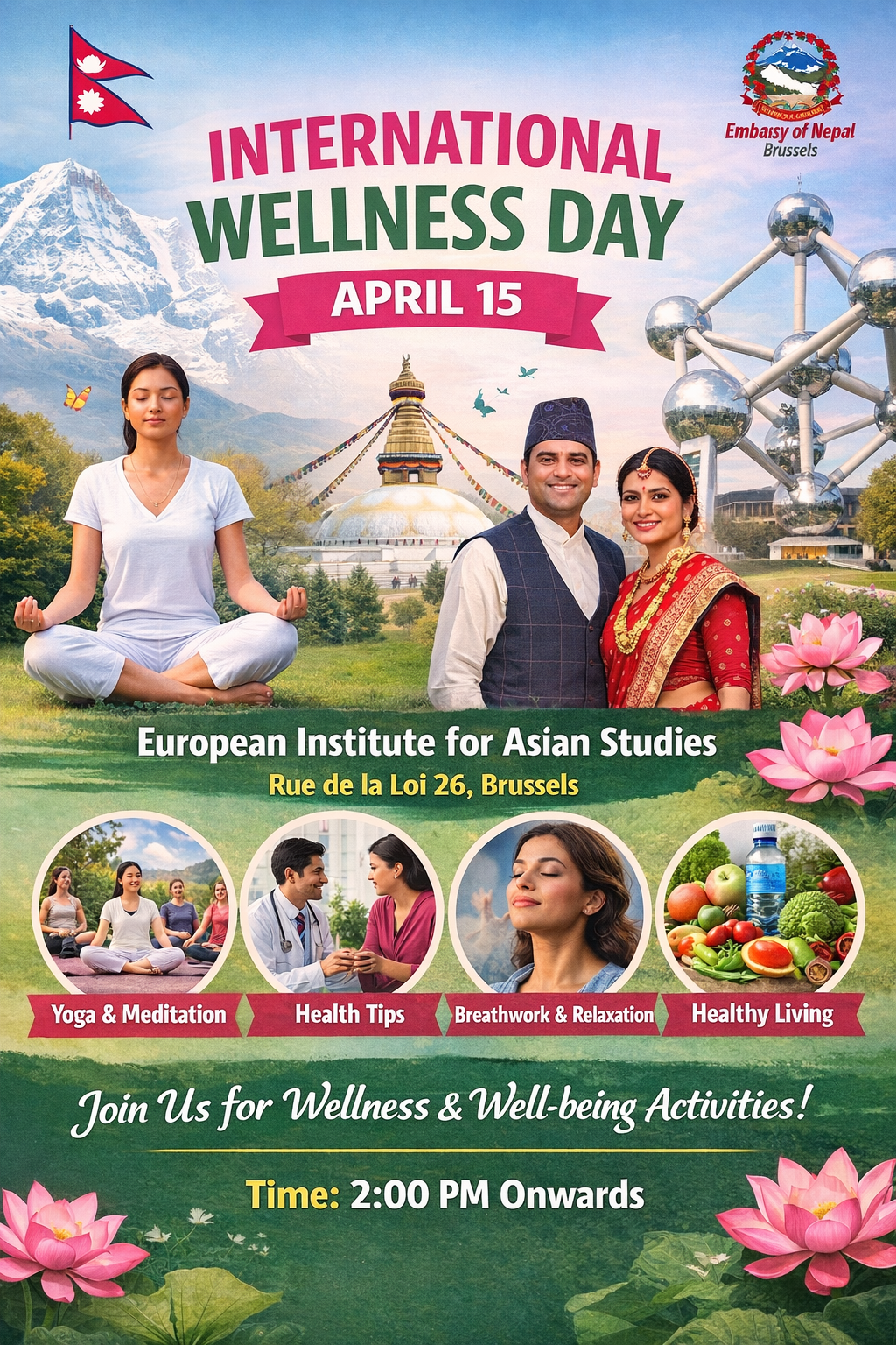 नेपाली दुतावास बेल्जियमको आयोजनामा ब्रसेल्समा अन्तर्राष्ट्रिय आरोग्य दिवस हुने भएकोछ। यहि अप्रिल १५ तारिख बुधवार दिउसो दुई बजे युरोपियन युनियनको यसियन अध्ययन केन्द्रमा आयोजना गरिएको आरोग्य दिवस समारोहमा बिभिन्न देशका राजदुतहरु, युरोपियन युनियन र बेल्जियम सरकारका प्रतिनिधि एबम नेपाली समुदायको उपस्थिति रहने दुतावासले जनाएकोछ।